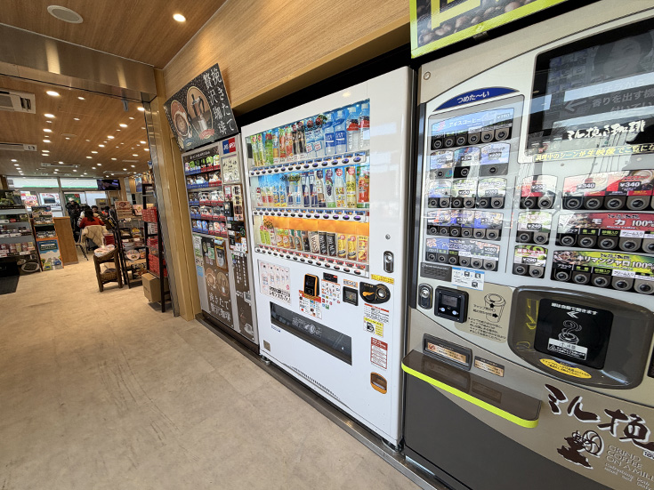 自販機が並ぶエリアの向こうにリニューアルしたフードコートがあります。