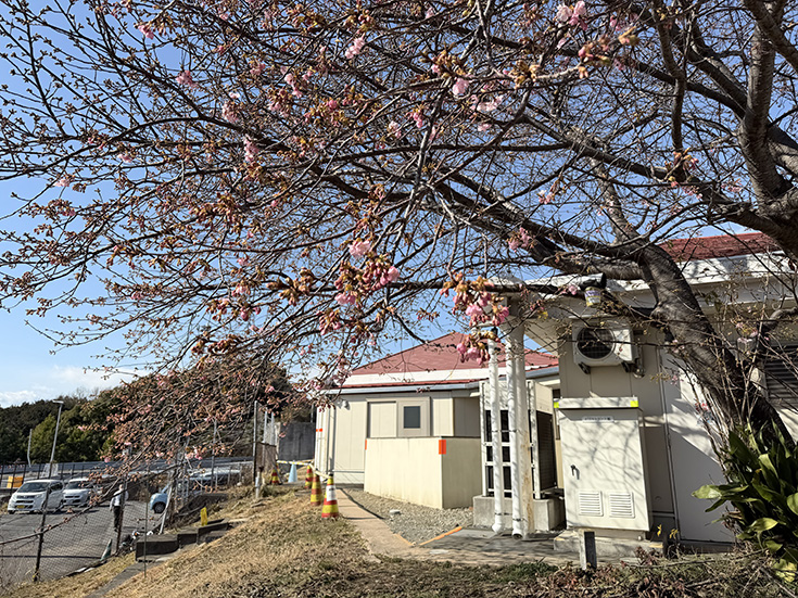 一般道からアクセスする人用の駐車場に車を停めて、いつもの入口へ。カワヅザクラでしょうか、蕾がお出迎え。