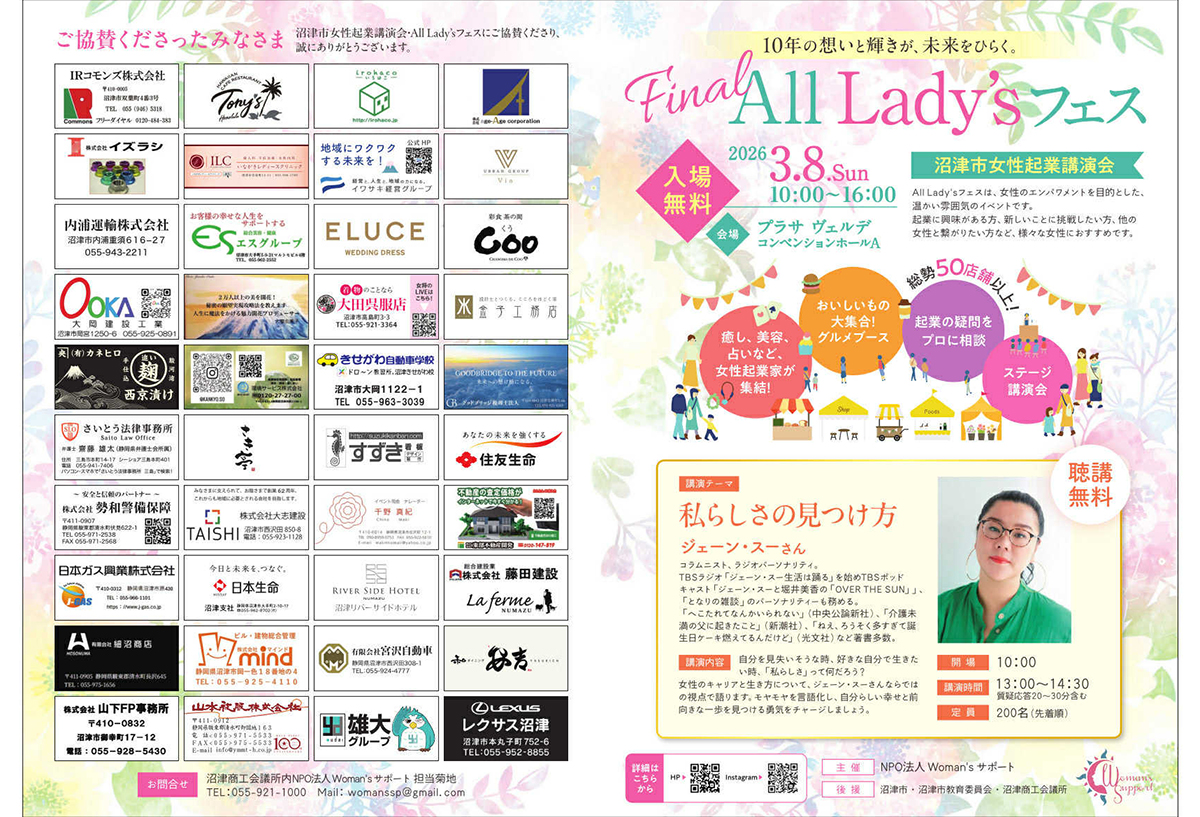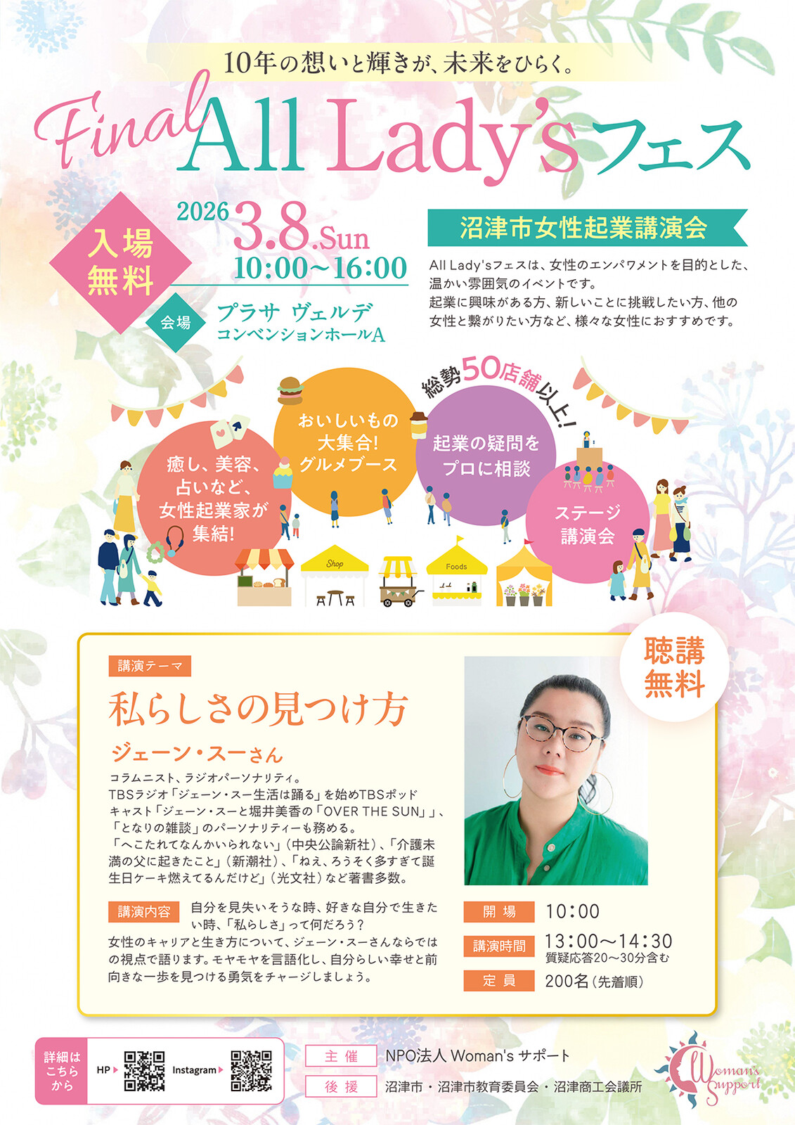 今年も沼津に女性の元気が大集合する日、ALL LADY'S フェス(オールレディーズフェス)がやってきます。10回目を迎える今回はFinalってことらしい。節目の年を迎えて最後になるのかしら。