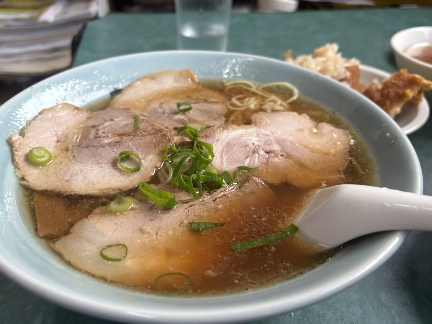 チャーシューメン、きたーーーーーーーーー。分厚くてとろけちゃうチャーシュー。そして、ザ・町中華のスープ。細麺を一気にすする。