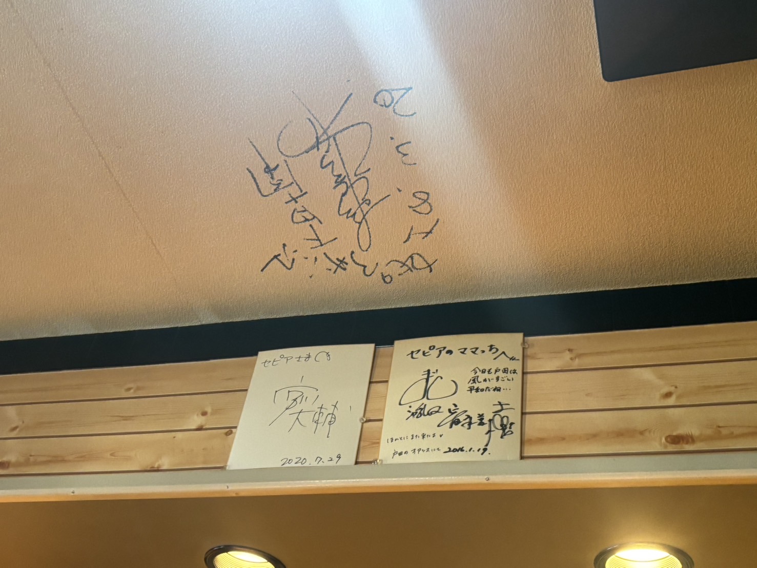 沼津市戸田のセピアに食べに行くことがあったら、美味しい料理をいただくのはもちろん、カウンター上のサインにも注目するべし。