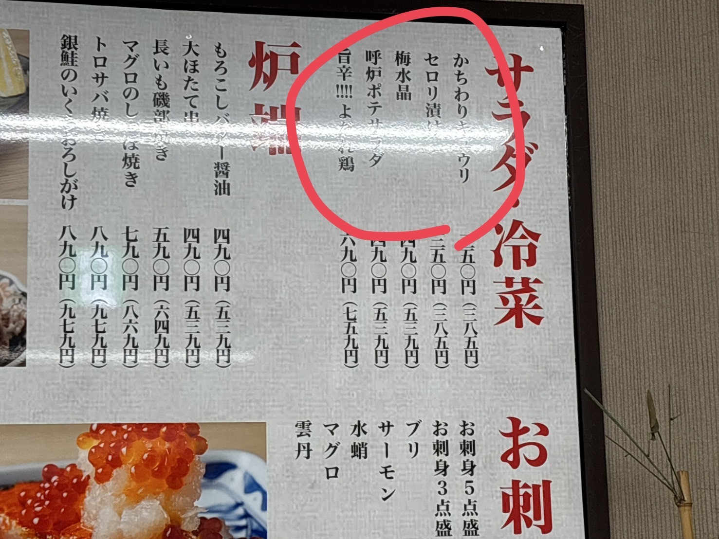 それだけで呑めちゃう・・・と思ったら、大好きな梅水晶もある。うひょー。炉端の大ほたて串もうまそー。