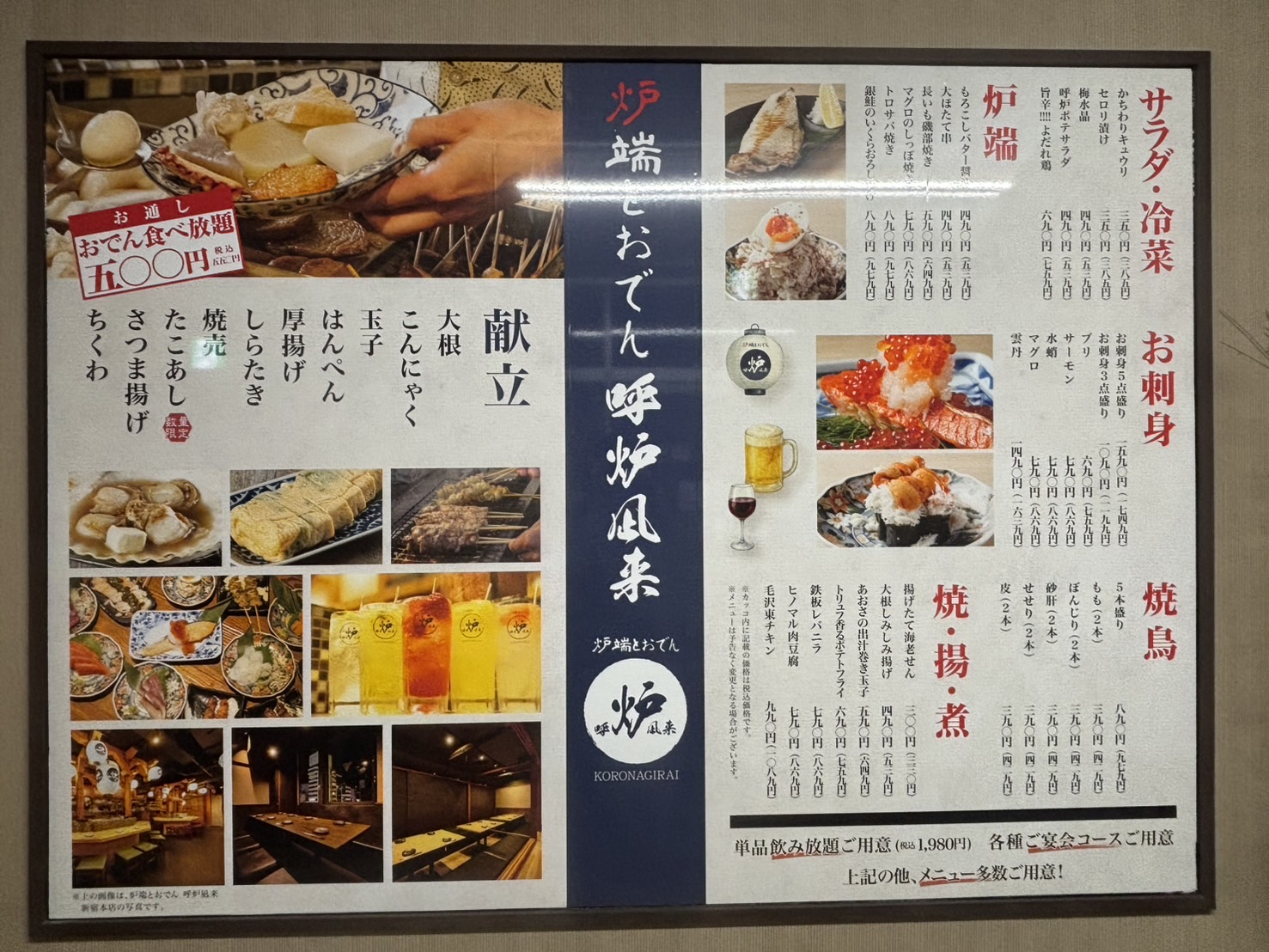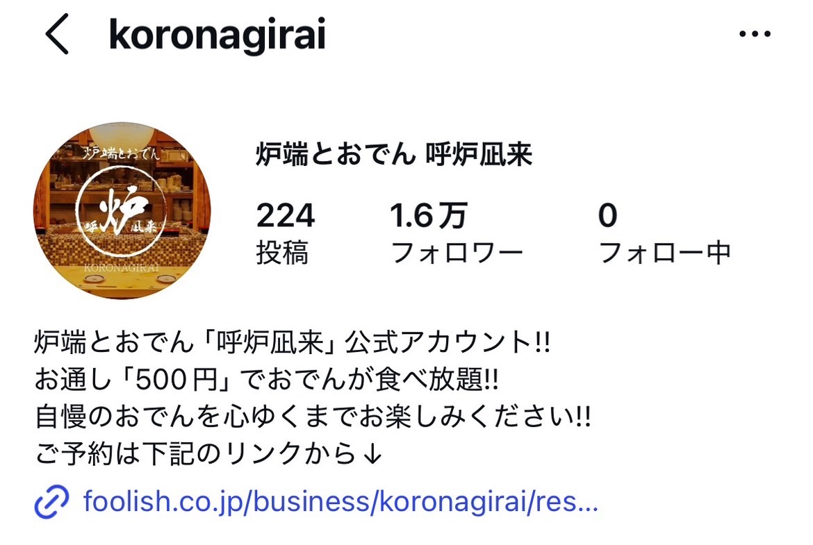 ネットで調べてみたら、株式会社FOOLISHって会社が、炉端とおでん呼炉凪来だけじゃなくて、もつ焼きとかジンギスカンのお店とかを、直営やFCで全国拡大中なんだって。すごいなぁ。