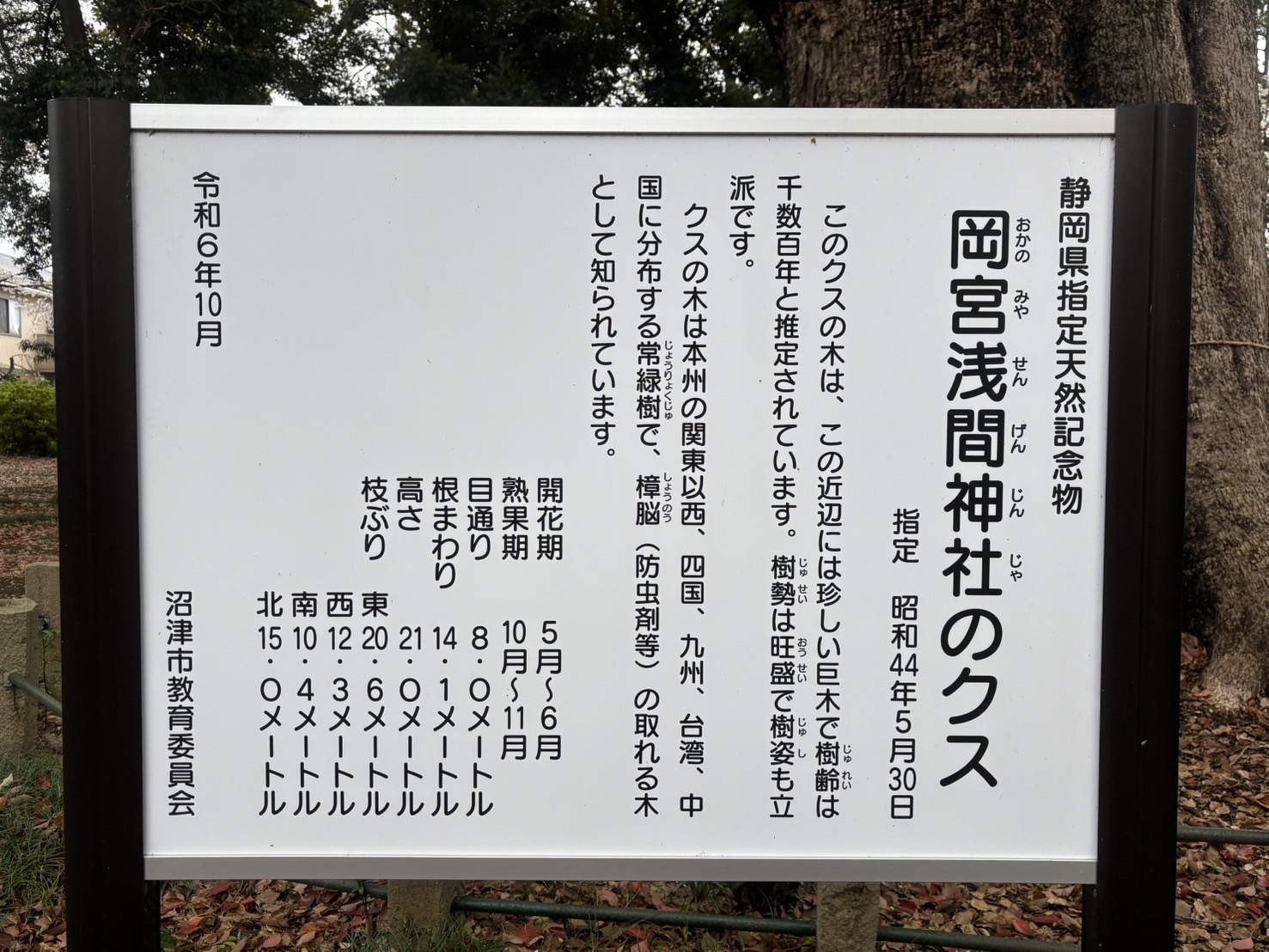 岡宮浅間神社のクス〒410-0011 静岡県沼津市岡宮ぬまづの宝100選での紹介ページはこちら↓https://www.city.numazu.shizuoka.jp/takara100/category/shizen/010.htm