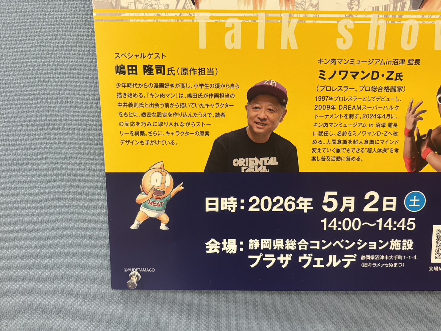 3月はあと22(土)、23(日)が出勤予定みたい!憧れの「宇宙超人ミノワマンD・Z館長」に握手してもらえるチャンス。4月の出勤予定も発見。キン肉マンミュージアムin沼津。(沼津市大手町)