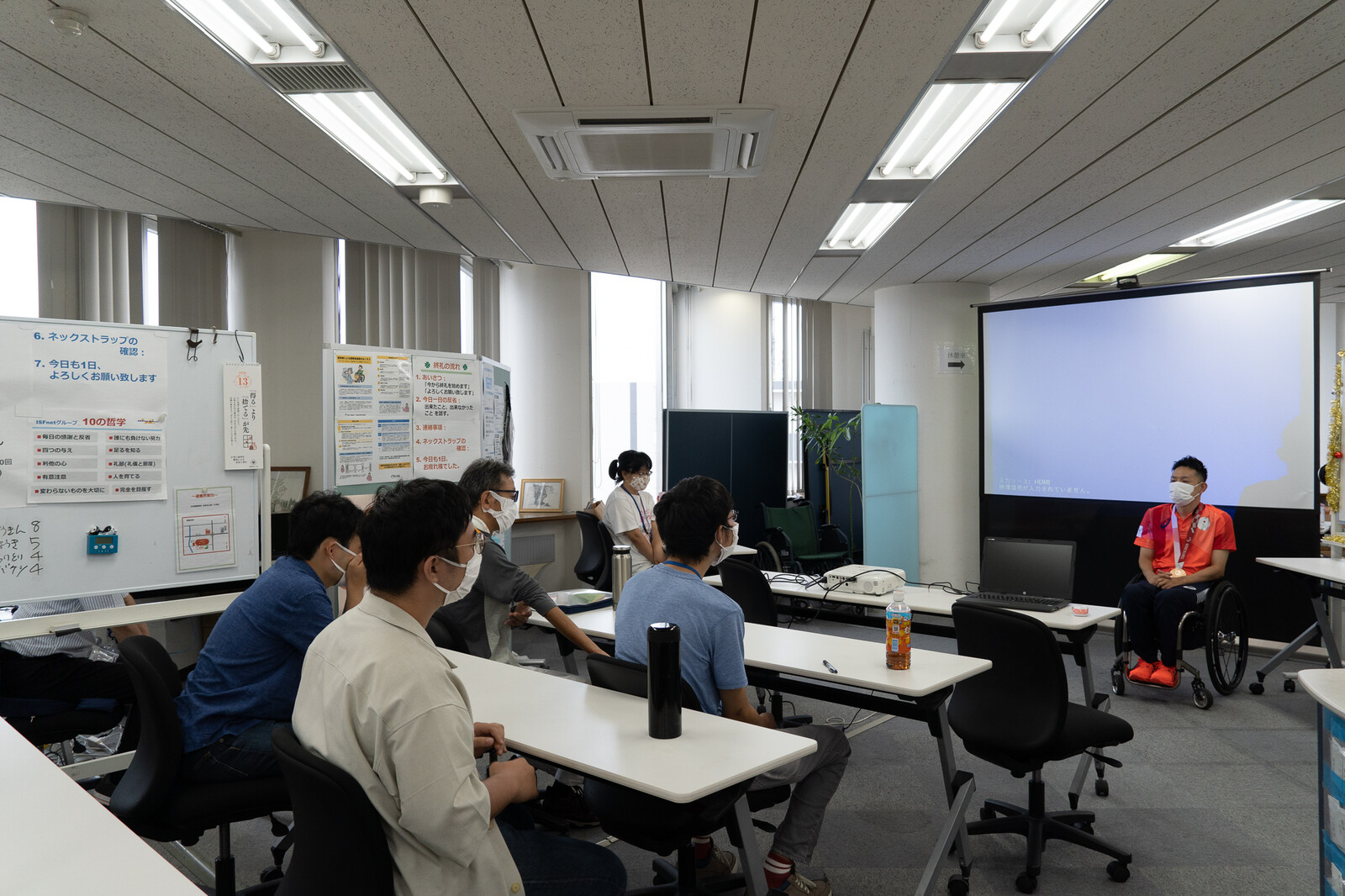 就労移行支援の皆さんに、パラリンピックの感想や、車いすラグビーを始めたきっかけなど