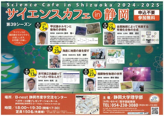 静岡大学では、「サイエンスカフェ in 静岡シーズン39」を下記の通り開催いたします。