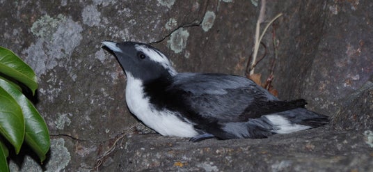 国指定天然記念物の「カンムリウミスズメ」。絶滅危惧種II類(VU)/環境省・IUCNに指定されている。