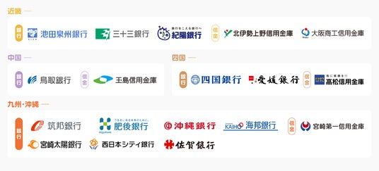 鳥取銀行、筑邦銀行、八十二銀行、肥後銀行、四国銀行、池田泉州銀行、秋田銀行、三十三銀行、愛媛銀行、北日本銀行、沖縄銀行