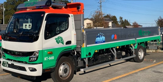 既に始めている取り組みとして、2023年9月には住宅施工現場への配送に平ボディのEVトラックを導入、更に2024年10月には廃油で走行するリニューアブルディーゼル車を神奈川県厚木市に導入し、建築部材の配送を開始しております。