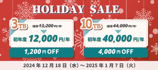 InfiniCloud株式会社(代表取締役CEO:瀧 康史)は、同社が開発・提供する国産大容量クラウドストレージサービス「InfiniCLOUD ( https://infini-cloud.net/ )」にて、2024年12月18日(水)より、期間限定のホリデーセールを開催いたします。