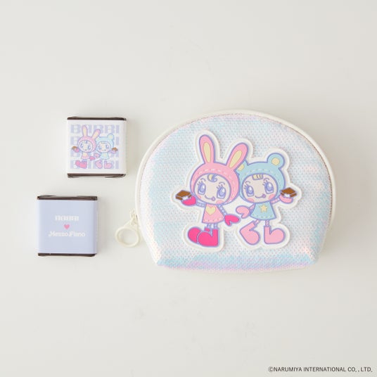 毎年バレンタインに様々なブランドとコラボをしているBABBIの2025年コラボ商品は、平成のジュニアブームを牽引し、当時「ナルミヤ」のキャラクターが大好きだった世代だけでなく、今現在Z世代からも再ブームが来ている「ナルミヤ」です。この機会にしか手に入らないコラボポーチは、キラキラのスパンコールがあしらわれ、キャラクターが大きくプリントされています。また、中にはBABBIのチョコレートウエハース「ヴィエネッズィ」のバニラ味とピスタチオ味が入った今回しか手に入らない限定アイテムです。また、メゾピアノのスペシャルギフト ホワイトは阪急百貨店/阪急オンラインストアにて限定販売いたします。