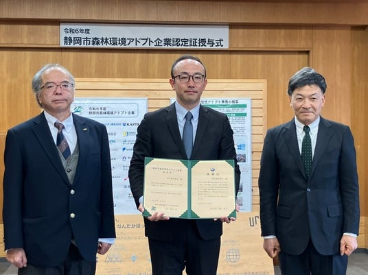 鈴与グループ鈴与グループは、1月15日(水)、静岡市役所にて難波静岡市長より「令和6年度 静岡市森林環境アドプト企業認定証」および「感謝状」を受領しました。