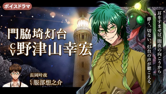 1月31日(金)には、灯台に秘められた歴史や物語を紐解くボイスドラマ『幻想夜話』の新エピソードに、門脇埼灯台の守り人が登場します。「声優アワード」で歌唱賞を受賞した実力派声優・野津山幸宏さん演じる門脇埼灯台と、服部想之介さんが演じるルポライター・長岡叶夜との掛け合いをお届けします。