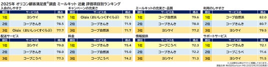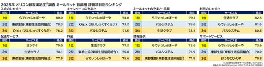『ミールキット 首都圏』評価項目別ランキング(2025年 オリコン顧客満足度(R)調査)