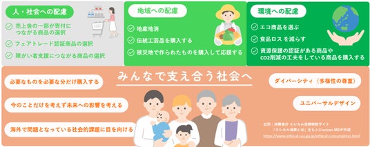 人や社会、地球環境、地域に配慮した消費のことを言います。 (※エシカル=倫理的・道徳的)