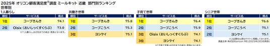 評価項目別では、「入会のしやすさ」「配送サービス」で2年連続の1位、世帯別「共働き世帯」で1位を獲得しています。