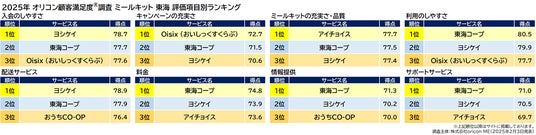 『ミールキット 東海』評価項目別ランキング(2025年 オリコン顧客満足度(R)調査)