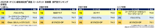 また、総合6位の【コープデリ(コープみらい)ウィークリーコープ】は世帯別「シニア世帯」で2年連続の1位、総合7位の【ヨシケイ】は評価項目別「配送サービス」で2年連続の1位、世帯別「子育て世帯」で1位を獲得しています。