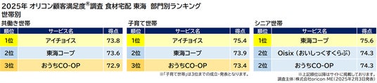 『食材宅配 東海』部門別ランキング(2025年 オリコン顧客満足度(R)調査)
