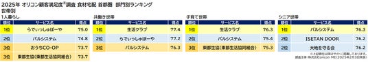 『食材宅配 首都圏』部門別ランキング(2025年 オリコン顧客満足度(R)調査)