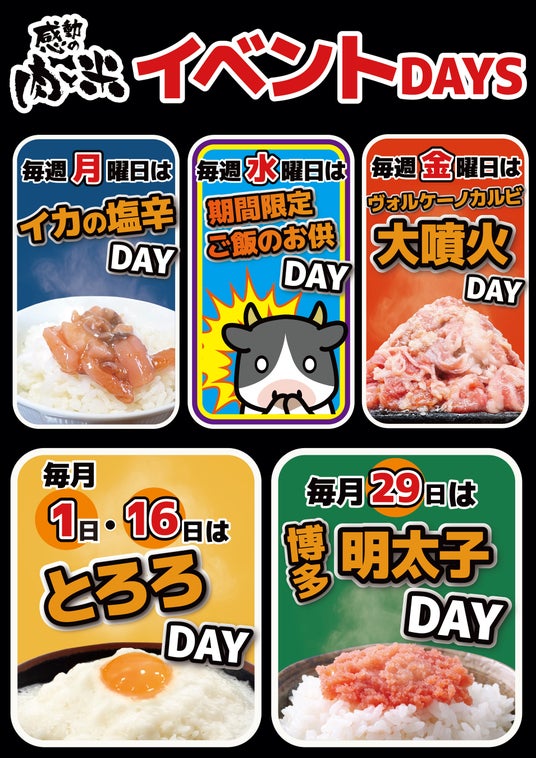 また、『感動の肉と米 イベントDAYS』では最強のご飯のお供が追加で登場します。
