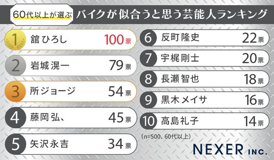 続いて「60代以上が選ぶバイクが似合うと思う芸能人ランキング」を理由とともに発表します。