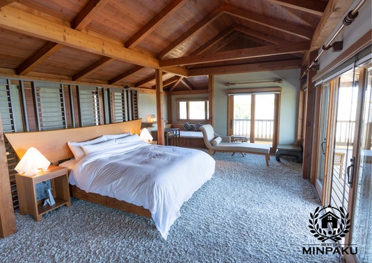 「Private beach retreat Resort villa iki by ritomaru」の寝室は広々とした空間「BEST OF RESORT MINPAKU 2025」に輝いた宿
