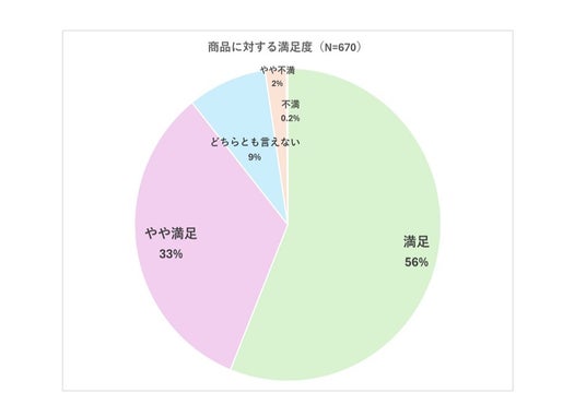 「満足」(56%)と「やや満足」(33%)を合わせた感想は89%に上り、愛猫家の皆様に喜ばれていることがわかりました。