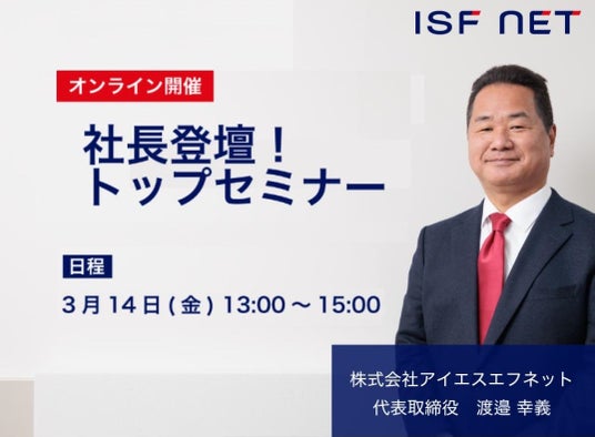 株式会社アイエスエフネット(本社:東京都港区/代表取締役:渡邉幸義、以下アイエスエフネット)は、2025年3月3日(金)に、26年卒向け「社長登壇!トップセミナー」を開催します。当日は代表の渡邉が登壇し、当社の魅力をお伝えします。