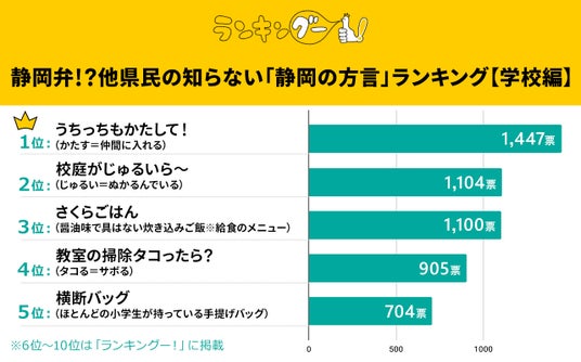 CMサイト株式会社CMサイト(本社:大阪府大阪市、代表取締役社長:柴原 誠治)が企画編集する、「ちょっと気になる」を調べたランキングサイト『ランキングー!(https://rankingoo.net/)』は、『静岡弁!?他県民の知らない「静岡の方言」ランキング【学校編】』の結果を、投票者のコメント付きで紹介する記事として公開しました。