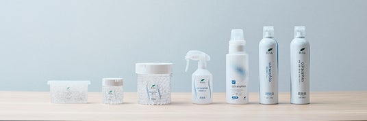 本製品は、粉体ポリマーと専用の消臭液剤、容器がセットになった "キット" 形式の消臭剤で、お客様自身が仕上げる楽しさを体験できる製品です。
