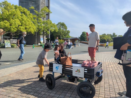 自動でロボットが自分の後をついて来る追従体験もできます!
