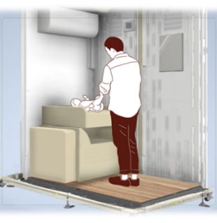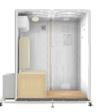 「屋外でも快適にベビーケアができるように」そんな願いをこめて、当社は屋外用ベビーケアルーム「mamaro solana(TM)(ママロソラナ)」を開発しました。屋外や軒下などの空きスペースに設置できるよう、外寸は約2m×1.3mとコンパクトサイズに設計しました。また、動線に合わせた配置を可能にするため、移設を容易にするキャスターを取り付けております。