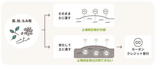 図1、バイオ炭の農地施用によるCO2削減イメージ