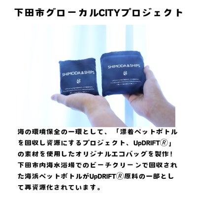 下田市は、プロジェクトの成果物の第2弾として、漂着ペットボトルを資源とした素材を使用した、株式会社シップスがデザインしたオリジナルエコバッグを製作しました。