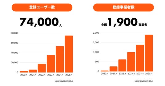 登録ユーザー数は7万人超え。受け入れ先は 全国47都道府県1900事業者