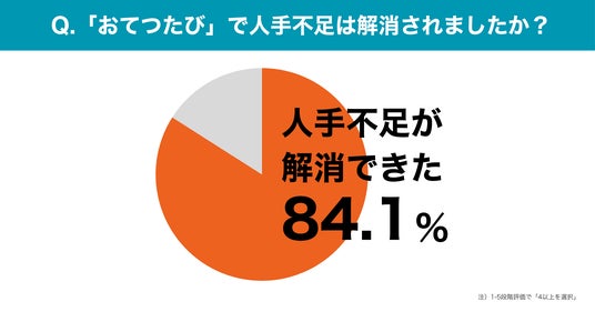 おてつたび利用事業者様へのアンケートによると、84%が「人手不足が解消できた」と回答
