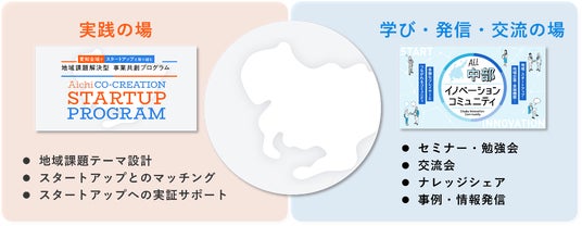 「AICHI CO-CREATION STARTUP PROGRAM(実践の場)」と「中部イノベーションコミュニティ(学びの場)」