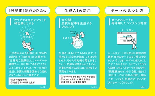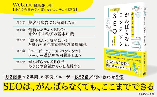 本書で紹介している「コンテンツSEO」とは、検索ユーザーが求める良質なコンテンツを自社ホームページに継続的に掲載することで集客や問い合わせにつなげる手法です。「SEOに取り組みたいけど、専門知識も人手も時間も足りない」。本書では、そんなジレンマを抱える中小企業の経営者やWeb担当者の皆さまに向けて、限られたリソースでも無理なく成果につなげるコンテンツSEOの考え方やノウハウをわかりやすく解説しました。