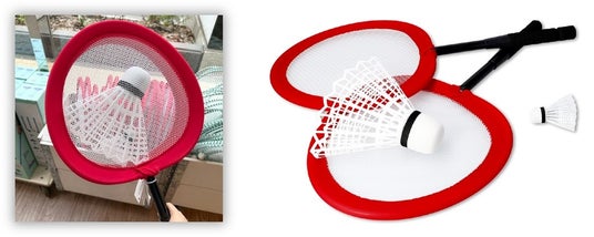手に持っているだけで笑顔がこぼれちゃう!30.5cm×60cmの巨大バドミントン。シャトルは通常サイズの3倍です。