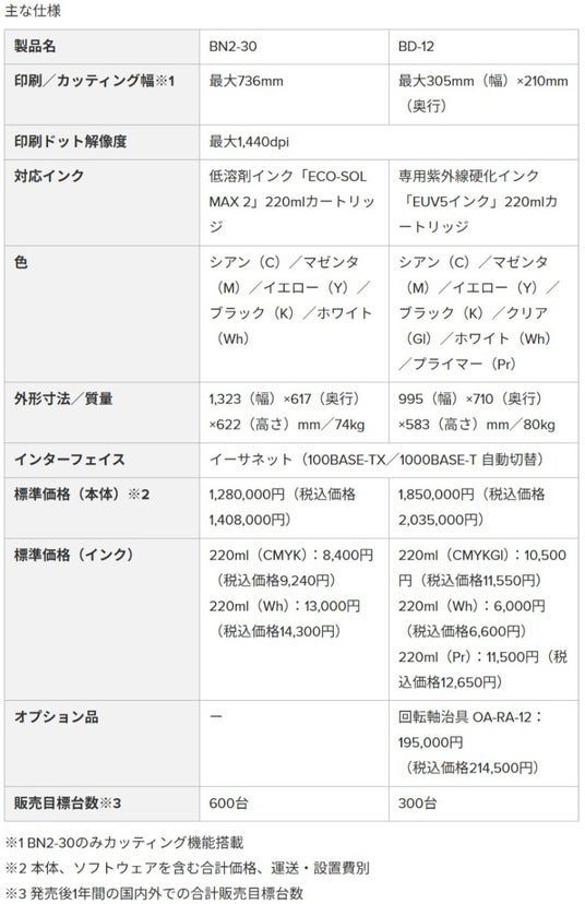 業務用インクジェットプリンターを製造・販売するローランド ディー.ジー.株式会社は、2025年3月27日から日本において先行販売を開始した「VersaSTUDIO(バーサスタジオ)」シリーズ最新モデルの溶剤インクジェットプリンター「BN2-30」とUVフラットベッドプリンター「BD-12」を本日よりグローバルで発売いたします。