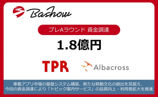 2025年6月11日、株式会社Bashow(本社:東京都中央区、代表取締役:程塚正史、以下「当社Bashow」)は、TPR株式会社(本社:東京都千代田区、代表取締役社長兼COO:矢野 和美)及び株式会社アルバクロス(本社:東京都千代田区、代表取締役:鈴木亮太)が運営するアルバクロス1号投資事業有限責任組合を引受先とするJ-KISS型新株予約権によって、プレAラウンドにて総額1億8000万円の資金調達を実施いたしました。