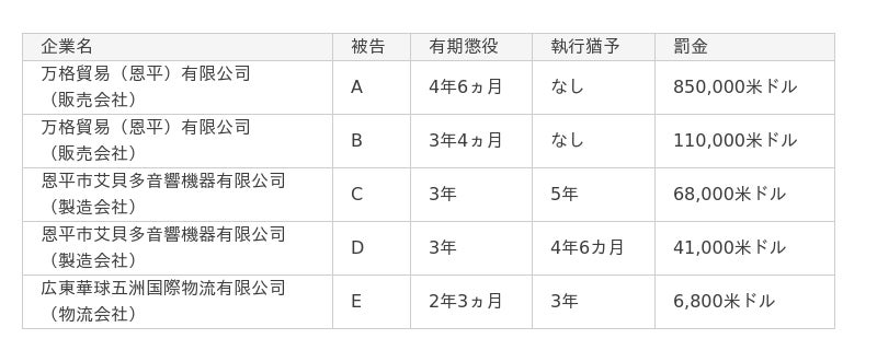 その後2024年5月に、これら3社は中国法執行当局により起訴され、模倣品の製造・販売等に関する事実を全面的に認めました。一審判決では、模倣品の製造・販売の差し止めが命じられるとともに、3社の被告5名には懲役刑及び執行猶予付きの懲役刑が言い渡され、模倣品の販売額に応じて被告5名全員に罰金が科されました。これに対し、被告2名は一審判決を不服として控訴しましたが、二審判決は一審判決を維持し、刑罰が確定いたしました。