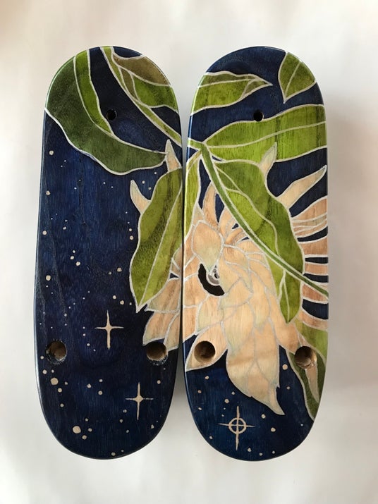 インテリアの専門学校を卒業後、靴メーカーに就職し、企画やデザインを担当。その後、地元静岡の伝統産業である塗下駄に注目し、修業の後、下駄アーティストに転身しました。