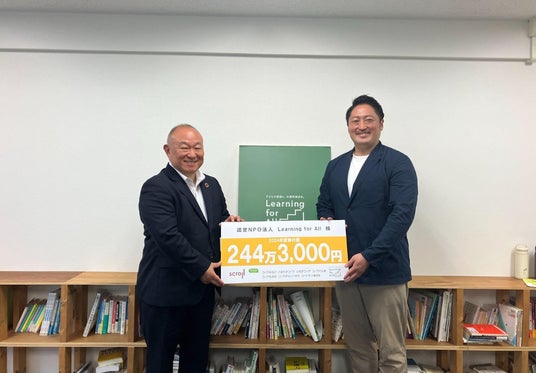 認定NPO法人Learning for All(以下、LFA)はこのたび、コープデリ生活協同組合連合会(以下、コープデリ)と株式会社スクロール(以下、スクロール)より、総額244万3,000円のご寄付をいただきました。この寄付は、コープデリとスクロールが2024年度に実施した「衣料品回収プロジェクト」において、6,611名の組合員が参加した「回収キット」の売上の一部をもとにしたものです。