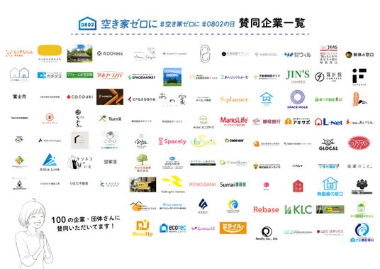 このキャンペーンの旗印である「8月2日空き家ゼロにの日」まで、1ヶ月。 賛同企業・団体・自治体は、全国100を超え、それぞれの立場から空き家問題に向き合おうとしています。