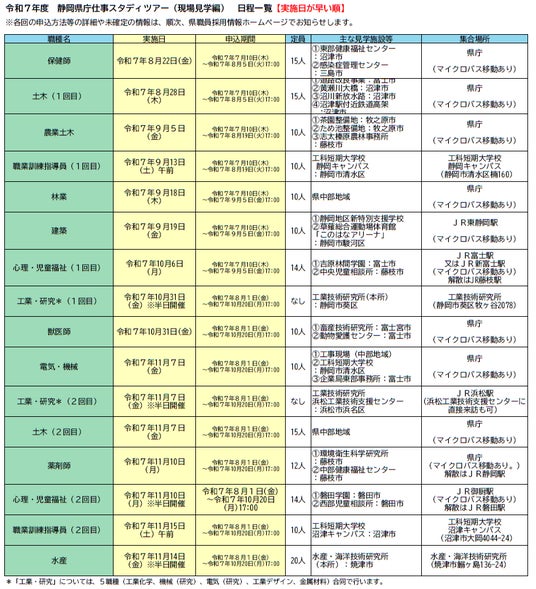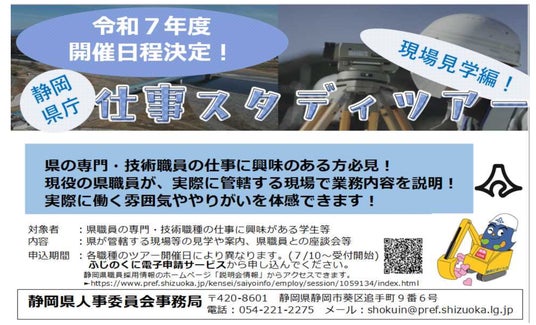 <静岡県庁>仕事スタディツアー[専門・技術職員と行く現場見学] 令和7年度開催決定!