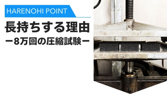 素材に対しては、8万回以上の耐久試験を実施。キッチンスポンジの中には、使用状況にもよりますが1~2週間ほどで変形が始まるものもあります。しかし、HARENOHIキッチンスポンジは、その耐久性により1か月ほどは変形せず、泡立ちを維持します。
