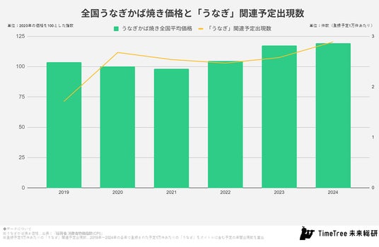 市場価格は高騰するも「非日常の食事」としてうなぎ人気は増加。2019年から2024年で予定登録数は70%増加
